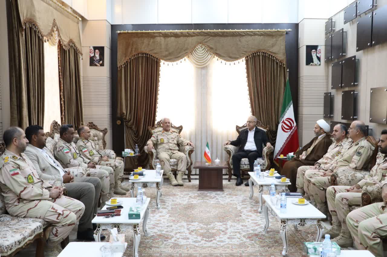 محمد آشوری در دیدار با سردار بهادر اسماعیلی، فرمانده مرزبانی و جمعی از مرزبانان استان هرمزگان ضمن قدردانی از همت و تلاش شبانه روزی مجموعه فرماندهی مرزبانی استان گفت:آرامش و امنیت مرزهای دریایی و ساحلی استان را مدیون مرزبانان غیور است که این آرامش در تمام کشور تکثیر می شود.