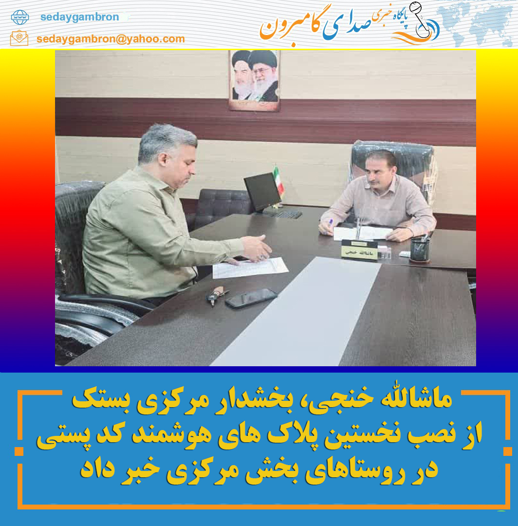 به گزارش پایگاه خبری صدای گامبرون و به نقل از ؛ روابط عمومی بخشداری مرکزی، ماشاالله خنجی؛ بخشدار مرکزی شهرستان بستک طی نشستی با حسین عطایی؛ رئیس اداره پست شهرستان، از شروع نصب پلاک های هوشمند در روستاهای بخش مرکزی خبر داد و گفت: به زودی کار فهرست نهایی روستاها شروع خواهد شد.  مهندس خنجی […]