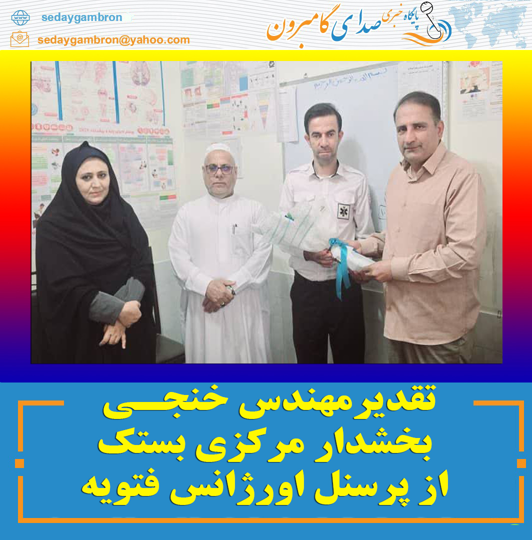 مهندس خنجی در پایان این مراسم، ضمن قدردانی از کادر خدوم و ایثارگر اورژانس فتویه با اهدای دسته گل، از تلاش های دکتر حمدان فیروزی؛ مدیر شبکه بهداشت و درمان شهرستان بستک و فهد محمدی؛ رئیس اورژانس شهرستان نیز تشکر و قدردانی نمود.