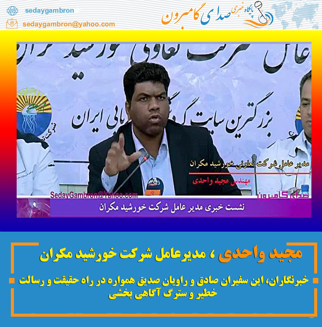 مجید واحدی ، مدیرعامل شرکت خورشید مکران : ۱۷ مرداد روز خبرنگار مبارک باد
